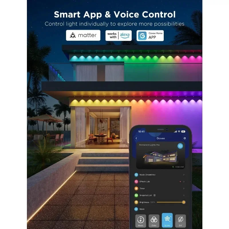 Govee 100ft Permanent Outdoor Lights Pro, 60 RGBIC LED, 75 Scene Modes for Halloween & Christmas