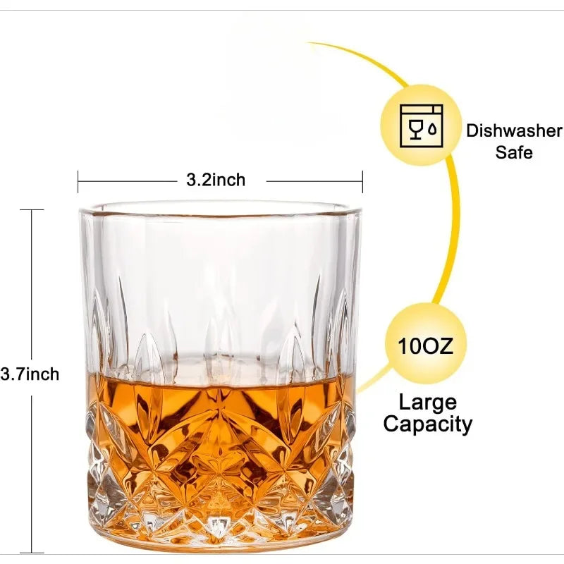 Whiskey Rocks Glass, Set of 4 (2 Crystal Bourbon Glasses, 2 Round Big Ice Ball Molds) In Gift Box - 10 Oz Old Fashioned Glasses